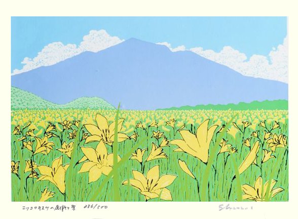 53 Scabrous gentian (Gentiana scabra) by Senpan Maekawa (1888-1960), woodblock