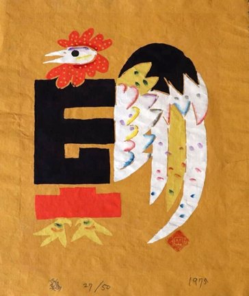 15 Red-crowned crane (Grus japonensis) by Kichiemon Okamura (1916-2002), stencil