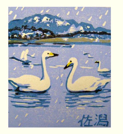 32 Gentian (Gentiana sp.) by Masaya Watabe (1931-), woodblock