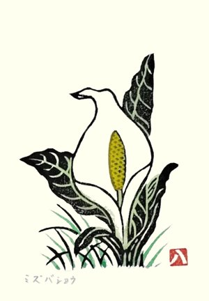 66 Giant butterbur (Petasites japonicus) by Yaozō Matsumi (1914-1999), woodblock