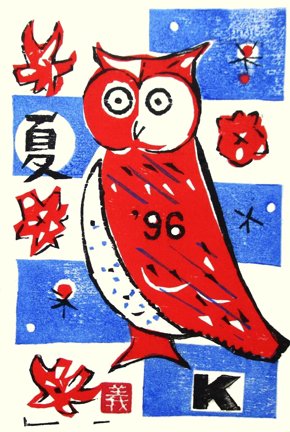 74 Domestic fowl (Gallus gallus) by Yoshiharu Kimura (1934-2013), woodblock