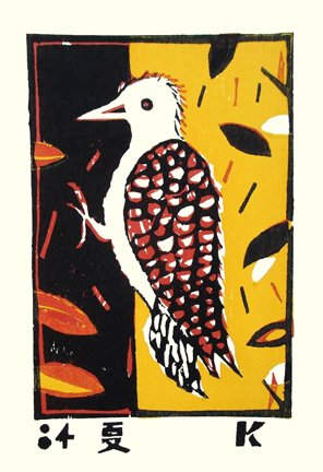 81 Owl (Family Strigidae) by Yoshiharu Kimura (1934-2013), woodblock